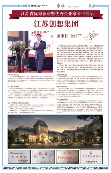 江苏创想集团及金董事长分别荣获江苏省优秀企业、江苏省优秀企业家称号